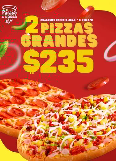Disfruta de nuestras deliciosas pizzas en dos sucursales, con un menú variado y opciones de entrega a domicilio.